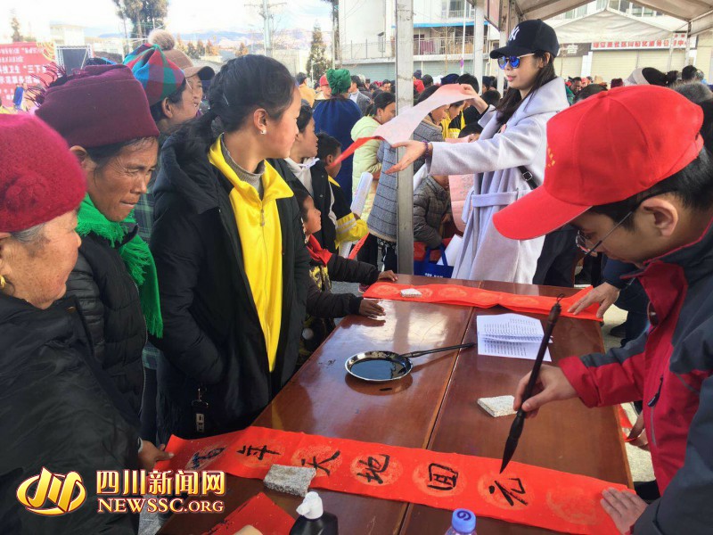 图为书法家正在为群众写对联