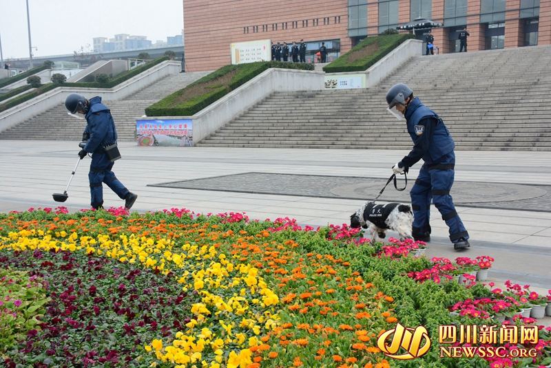 接到报警后,德阳市公安部门派出特警赶往现场进行处置。四川新闻网记者在现场看到,特警首先对站前广场实行警戒,接着有两组全副武装的特警进入站内搜查可疑人员。同时,另一组特警队员使用探测器和防暴犬在站前广场的各个地方搜寻爆炸物。