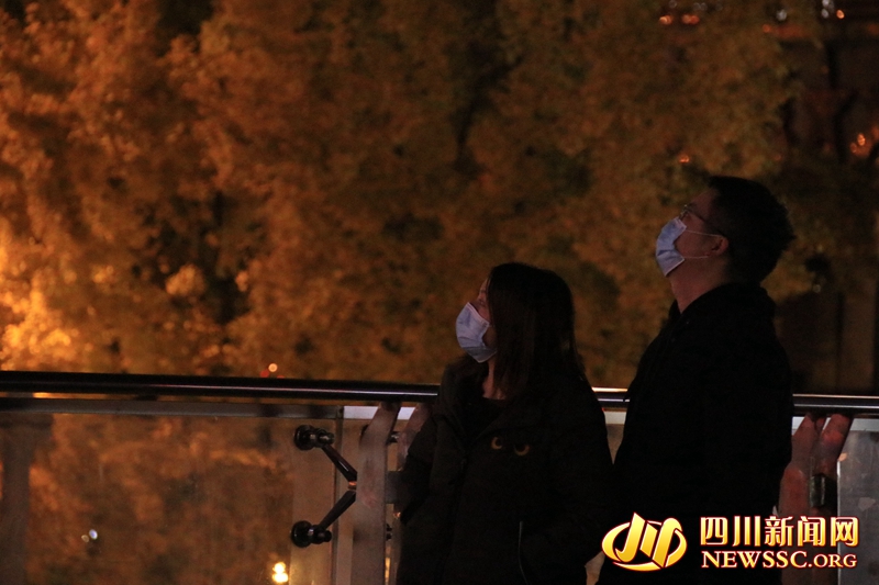 12月10日凌晨2点,春熙路步行街过街天桥一对情侣正在望向前方