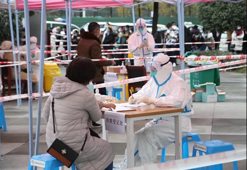 郫都区居民正在有序进行核酸检测 (郫都区宣传部提供)